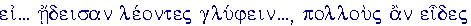 Una volta un leone fece la strada insieme ad un uomo. E si vantavano l’un l’altro a parole. Lungo il cammino poi trovarono una stele di pietra raffigurante1 un uomo che strozzava un leone. E l’uomo, avendo(gliela) indicata, diceva queste parole: "Guarda come siamo più forti di tutti voi e robusti al di sopra di ogni animale!" Ma il leone, presa la parola, così diceva: "E' in vostro potere fare e realizzare queste cose: se infatti i leoni sapessero scolpire, vedresti2 molti (uomini) sotto i leoni." La favola insegna che molti, vantandosi, cercano a parole di spacciarsi per autori (di grandi imprese)3, pur non essendo tali.
