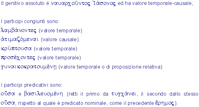 Quando gli Argonauti, capitanati da Giàsone1, approdarono2 a Lemno, l'isola si trovava ad essere deserta di uomini e governata da Ipsìpile, la figlia di Toante, per il seguente motivo: le donne di Lemno non onoravano Afrodite; essa, allora, le punì rendendole puzzolenti3, e per questo i loro mariti, prendendo(si) delle prigioniere di guerra dalla vicina Tracia, dividevano il letto con loro. (Così) oltraggiate, le donne di Lemno uccisero i (loro) padri e i (loro) mariti; soltanto Ipsìpile mise in salvo, nascondendolo, suo padre Toante. Sbarcando dunque a Lemno, allora in potere delle donne, gli Argonauti si unirono alle donne. Ipsìpile giacque con Giàsone, e generò (con lui) (due) figli, Eunèo e Nebròfono. |