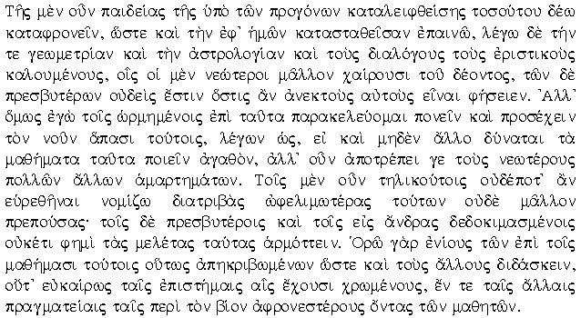 Isocrate esprime qui, non senza ironia, le sue personali convinzioni sull'utilità dello studio di alcune discipline scolastiche, in particolare della retorica "eristica": simili esercizi, utili forse alla formazione dei giovani, sono deplorevoli negli adulti, tant'è vero che gli insegnanti si rivelano più inetti alla vita pratica dei loro stessi allievi.