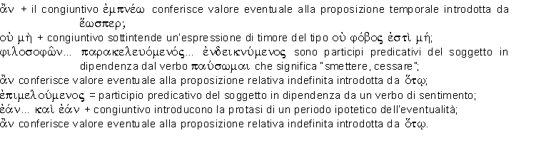 "Io, cittadini ateniesi, vi sono grato e vi voglio bene, ma obbedirò più al dio che a voi, e finchè avrò un soffio di vita1 e ne sarò capace, non smetterò2 di filosofare, di esortarvi e di ammonire chiunque di voi di volta in volta incontri, dicendo quelle parole che sono solito (dire): ‘O (tu che sei) il migliore degli uomini, che sei Ateniese, (cittadino) della città più grande e famosa per sapienza e potenza, non ti vergogni di darti pensiero delle ricchezze, (preoccupandoti) di averne il più possibile, e della fama e degli onori3, mentre non ti dài pensiero né ti curi della saggezza, della verità e dell’anima, che diventi il più possibile ottima?’ E se qualcuno di voi contesterà e dirà che se ne prende cura, non lo lascerò andare subito e non me ne andrò (io stesso), ma lo interrogherò e (lo) esaminerò, lo confuterò, e se mi sembrerà che non possieda la virtù, ma che (lo) dica (soltanto), (gli) rinfaccerò che stima pochissimo le cose degne di moltissima considerazione, mentre stima di più le cose che valgono meno. Queste cose farò a chiunque (io) incontri, sia giovane sia vecchio".